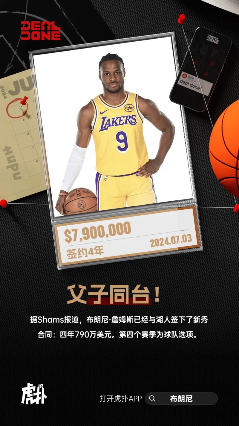 7月3日消息据NBA记者Shams Charania报道,消息人士透露,布朗尼·詹姆斯已经与湖人队签订了一份新秀合同:四年790万美元。第四季是团队选项。