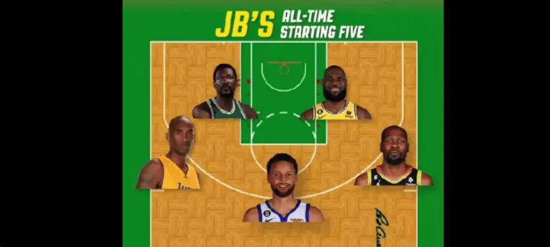 布朗:斯蒂芬·库里、科比·布莱恩特、凯文·杜兰特、勒布朗·詹姆斯、比尔·拉塞尔