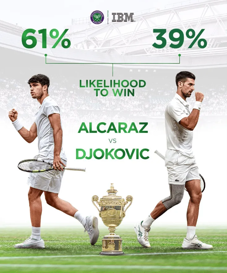7月14日:温网官方刚刚发布了对今晚男单决赛的预测,他们更加看好阿尔卡拉斯成功卫冕。