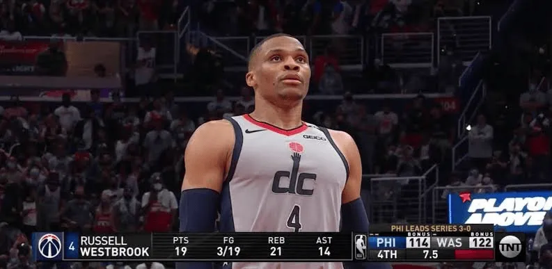 6月25日消息今天,美媒HoodieNaz 晒出了一张比赛图,这是威少在奇才时期的比赛数据。