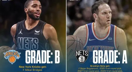 6月26日消息,据此前报道,篮网队将布里奇斯交易至尼克斯队,换来博扬·博格达诺维奇、四个不受保护的首轮选秀权以及一个通过雄鹿获得的受保护的首轮选秀权。的首轮选秀权、选秀权交换和第二轮选秀权。