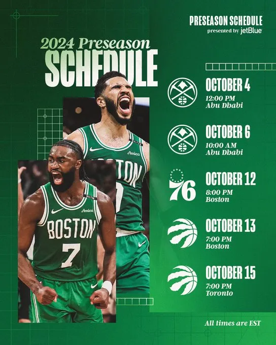 7月23日消息:凯尔特人队今天正式公布了2024-25赛季季前赛赛程。